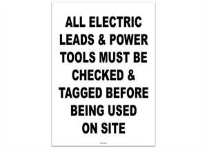 All Electric Leads and Power Tools Must Be Check and Tagged Sticker