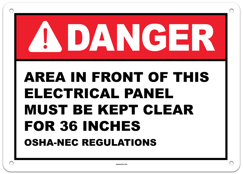 Area in Front of this Electrical Panel Kept Clear for 36 inches OSHA-NEC Regulations Sign