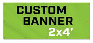 A custom banner with a simple text design. Make sure to provide us with an email to send you a design proof before we print (our design proofs are typically sent in 1-2 days). After receiving your approval of the design proof, we'll produce and ship your banner.