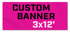 A custom banner with a simple text design. Make sure to provide us with an email to send you a design proof before we print (our design proofs are typically sent in 1-2 days). After receiving your approval of the design proof, we'll produce and ship your banner.