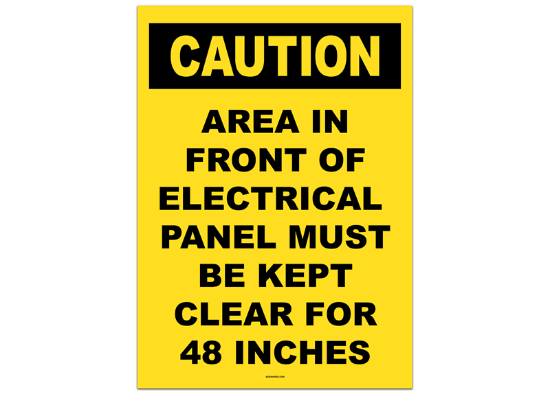 Caution Area in Front of Electrical Panel Kept Clear for 48 Inches Sticker