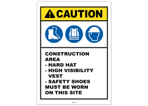 Caution Construction Area - Hard Hat - High Visibility Vest - Safety Shoes Must Be Worn On This Site Sticker