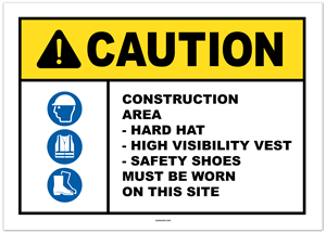 Caution Construction Area - Hard Hat - High Visibility Vest - Safety Shoes Must Be Worn On This Site Sticker 2