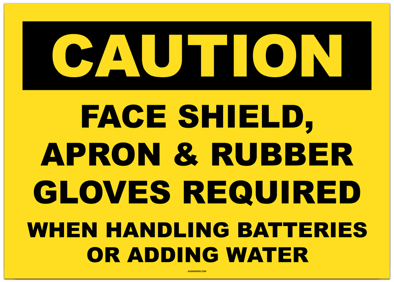 Caution Face Shield Apron Rubber Gloves Required Sticker