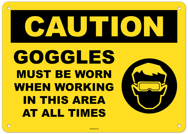 Caution Goggles Must Be Worn When Working in this Area at All Times Sign