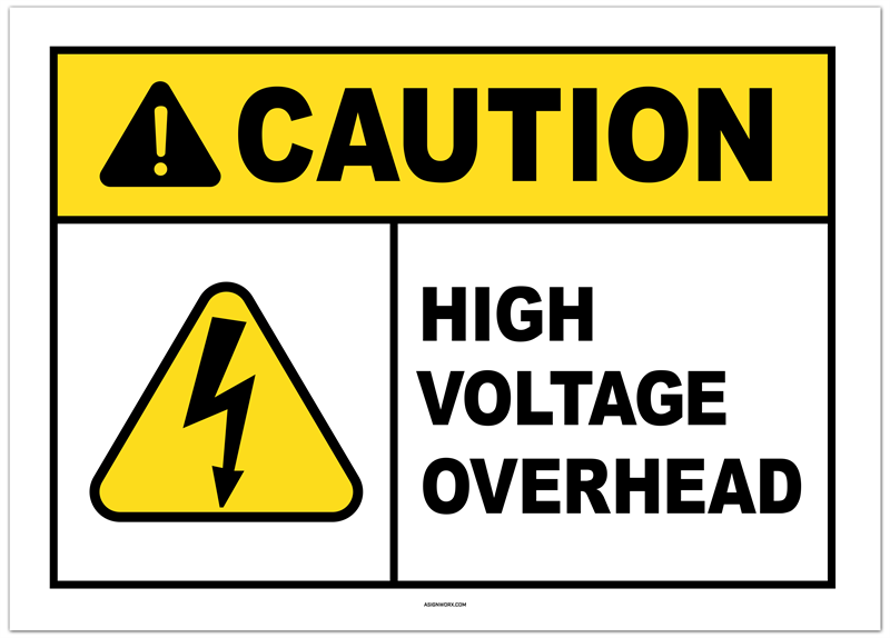 Caution High Voltage Overhead Sticker