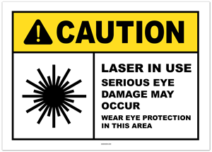 Caution Laser in Use Serious Eye Damage May Occur Sticker