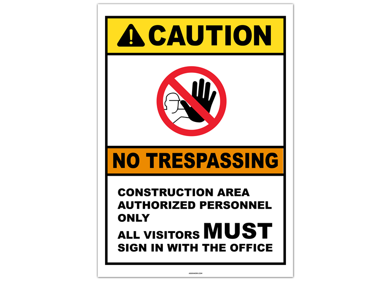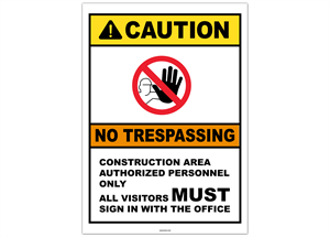 Caution No Trespassing Construction Area Authorized Personnel Only All Visitors Must Sign In With The Office Sticker 2