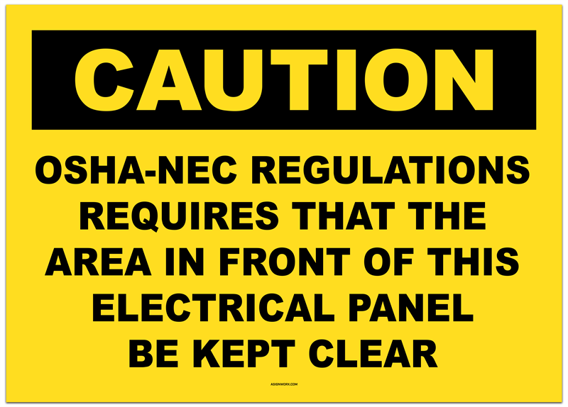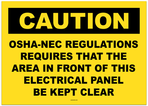 Caution OSHA-NEC Require Area in Front of Electrical Panel Must be Kept Clear Sticker 2