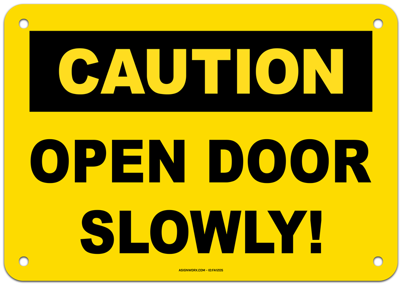 Caution Open Door Slowly Sign