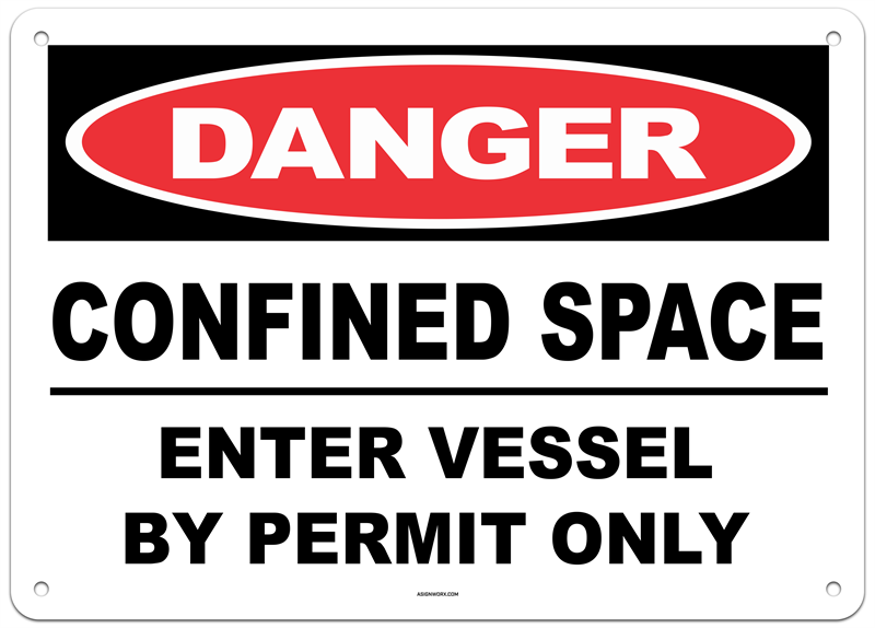 Danger Confined Space Enter Vessel by Permit Only Sign