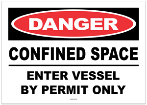 Danger Confined Space Enter Vessel by Permit Only Sticker