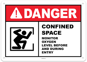 Danger Confined Space Monitor Oxygen Level Before and During Entry Sign
