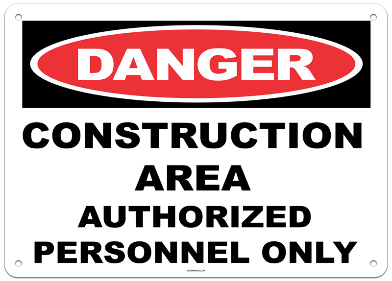 Danger Construction Area Authorized Personnel Only Sign