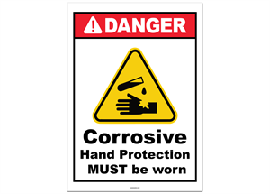 Danger Corrosive Hand Protection Must Be Worn Sticker