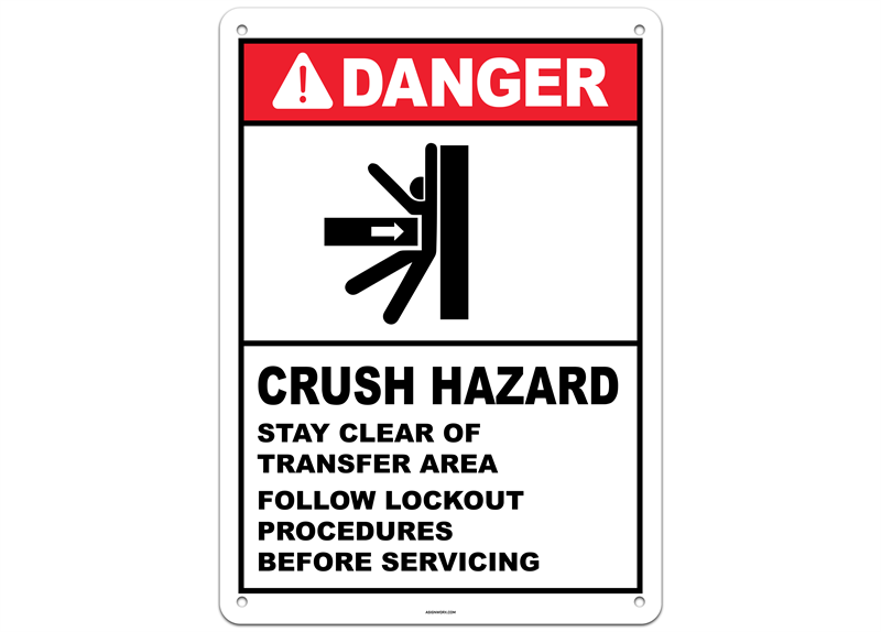 Danger Crush Hazard Stay Clear of Transfer Area Sign