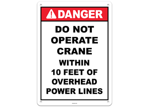 Danger Do Not Operate Crane Within 10 Feet of Overhead Power Lines Sign
