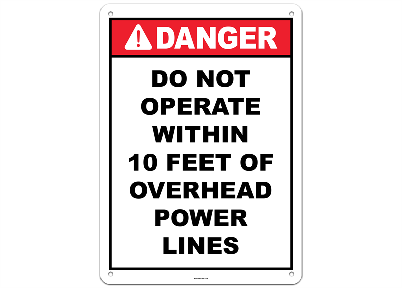 Danger Do Not Operate Within 10 Feet of Overhead Power Lines Sign