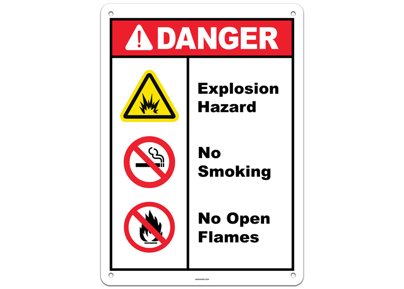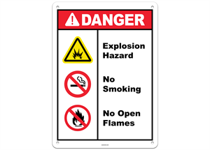 Danger Explosion Hazard No Smoking No Open Flames Sign