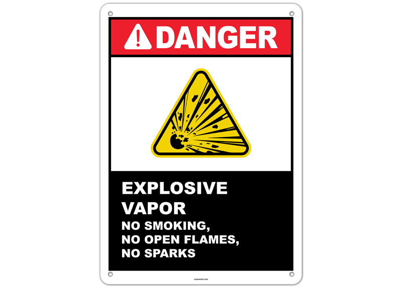Danger Explosive Vapor No Smoking, No Open Flames, No Sparks Sign