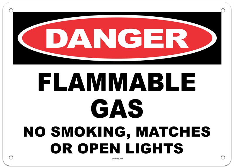Danger Flammable Gas No Smoking Matches or Open Lights Sign