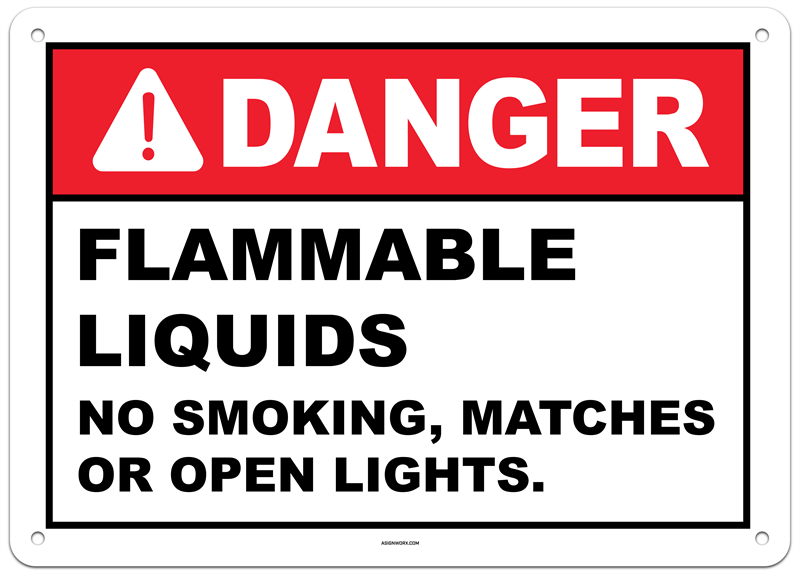 Danger Flammable Liquids No Smoking Matches or Open Lights Sign