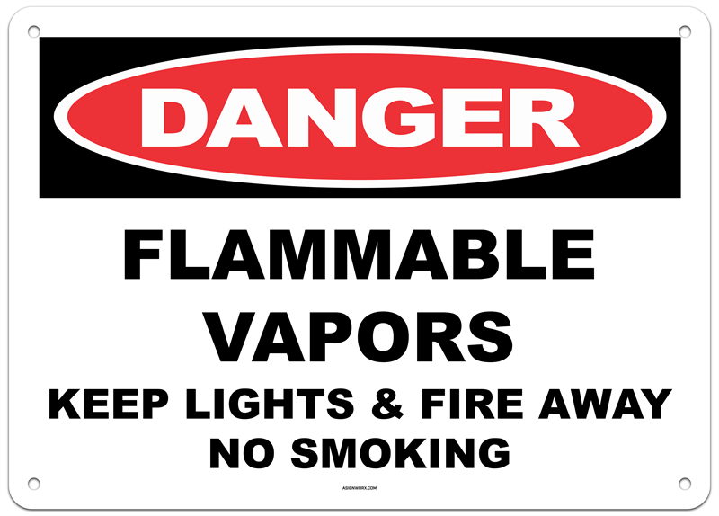 Danger Flammable Vapors Keep Lights & Fire Away No Smoking Sign