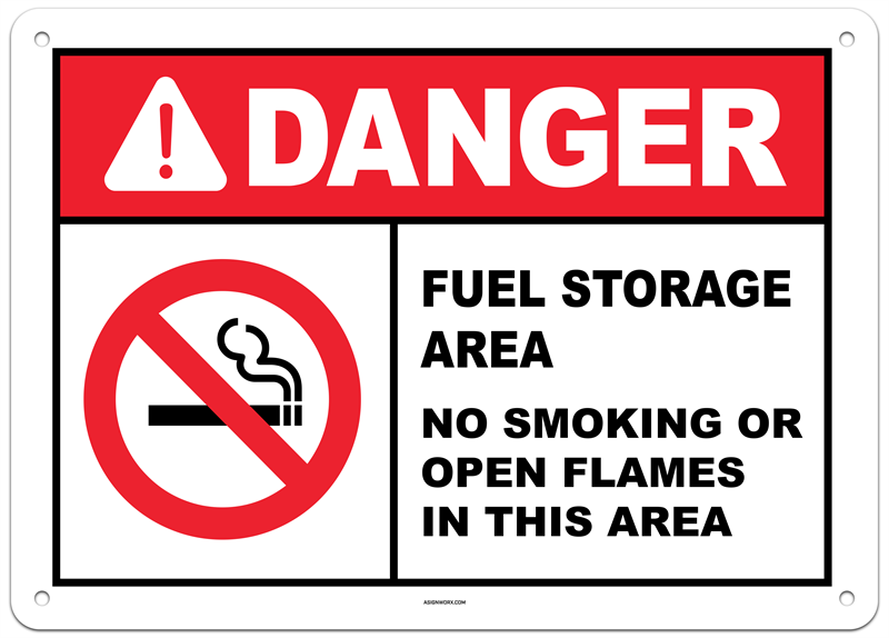 Danger Fuel Storage Area No Smoking or Open Flames Sign
