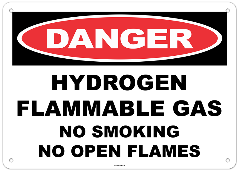 Danger Hydrogen Flammable Gas No Smoking No Open Flames Sign