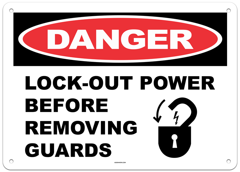 Danger Lock-Out Power Before Removing Guards Sign