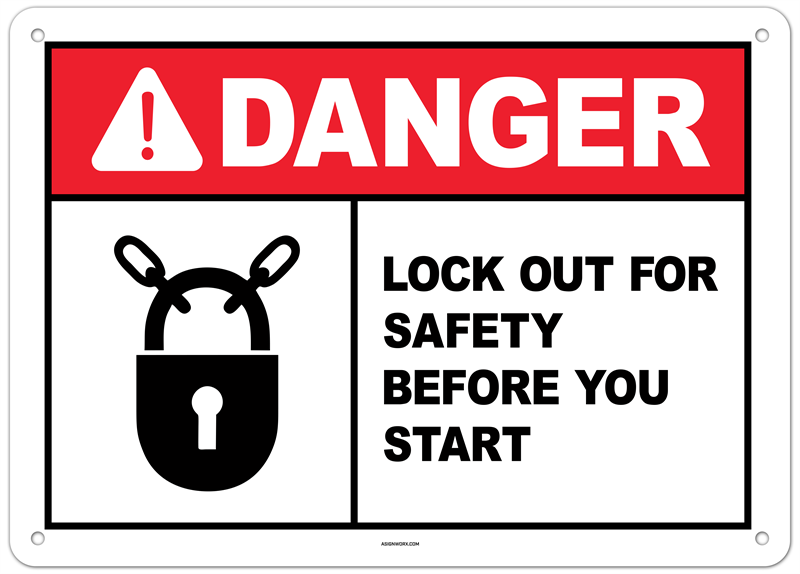 Danger Lock Out for Safety Before You Start Sign