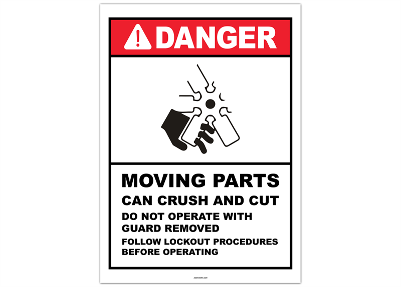 Danger Moving Parts Can Crush or Cut Do Not Operate With Guard Removed Sticker 3