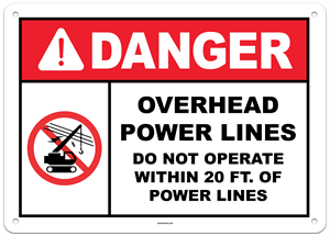 Danger Overhead Power Lines Do Not Operate Within 20 Feet of Power Lines Sign