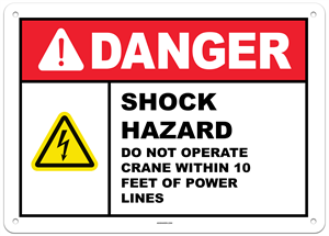 Danger Shock Hazard Do Not Operate Crane Within 10 Feet of Power Lines Sign