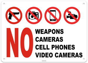 No Weapons, Cameras, Cell Phones, Video Cameras Sign