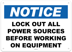Notice Lock Out All Power Devices Before Working on Equipment Sign