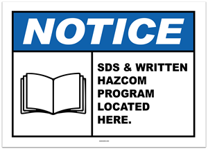 Notice SDS & Written HAZCOM Program Located Here Sticker