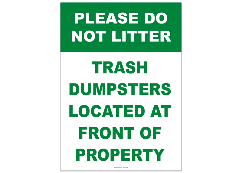 Please Do Not Litter Trash Dumpsters Located at Front Sticker