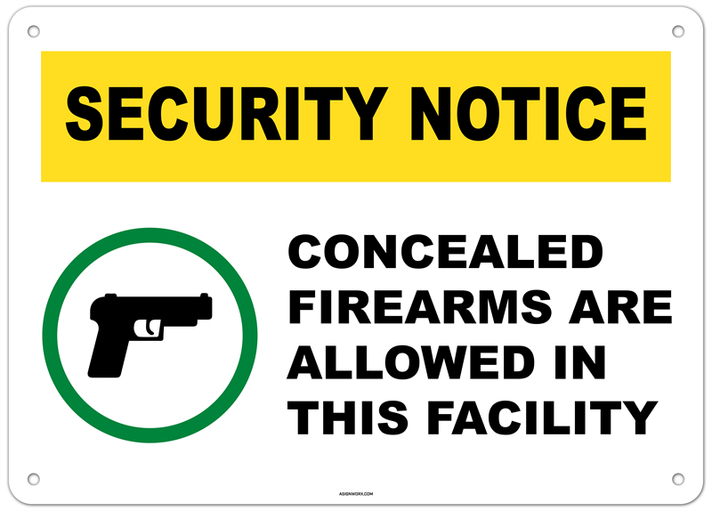 Security Notice Concealed Firearms are Allowed in this Facility Sign