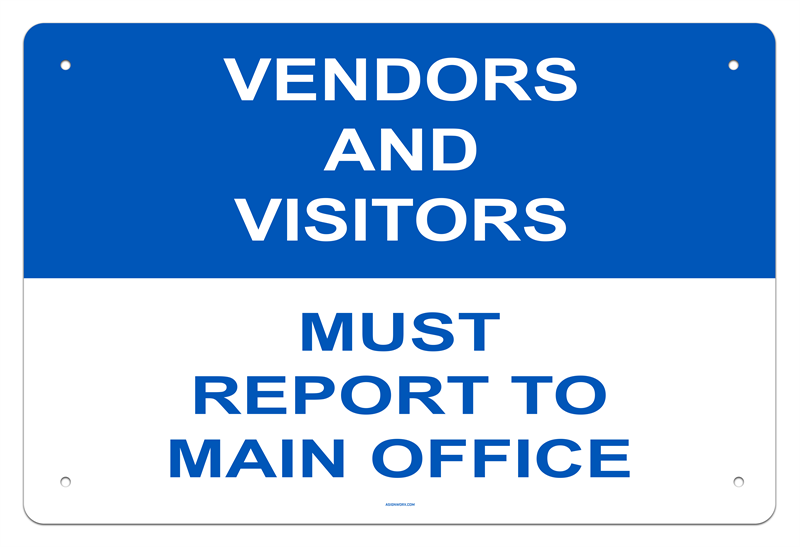 Vendors and Visitors Must Report to Main Office Sign 2