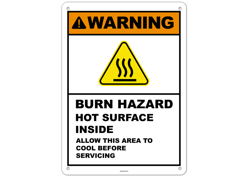 Warning Burn Hazard Hot Surface Inside Allow This Area to Cool Before Servicing Sign
