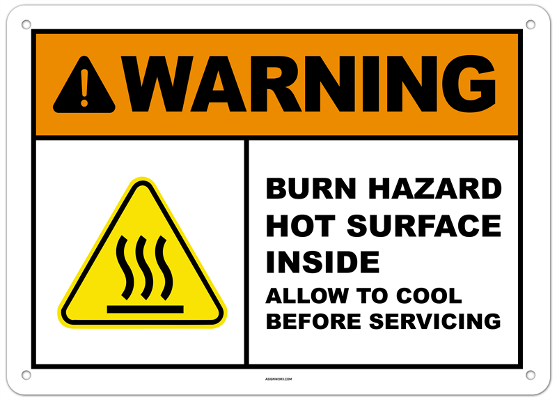 Warning Burn Hazard Hot Surface Inside Allow to Cool Before Servicing Sign