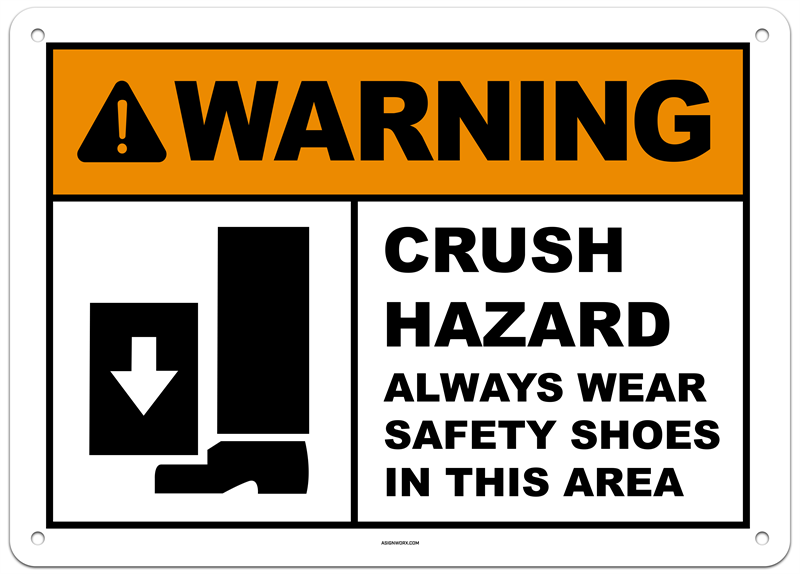 Warning Crush Hazard Always Wear Safety Shoes in this Area Sign