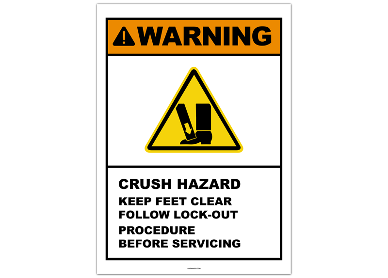 Warning Crush Hazard Keep Feet Clear Follow Lock-out Procedures Sticker