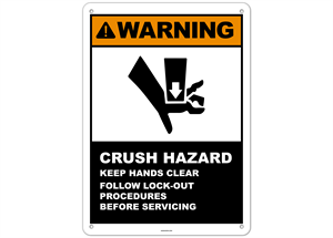 Warning Crush Hazard Keep Hands Clear Follow Lock-out Procedures Before Servicing Sign