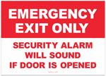 Emergency Exit Only Security Alarm Will Sound Sticker
