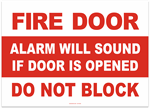 Fire Door Alarm Will Sound if Door is Opened Do Not Block Sticker