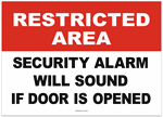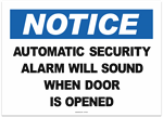 Notice Security Alarm Will Sound if Door is Opened Sticker