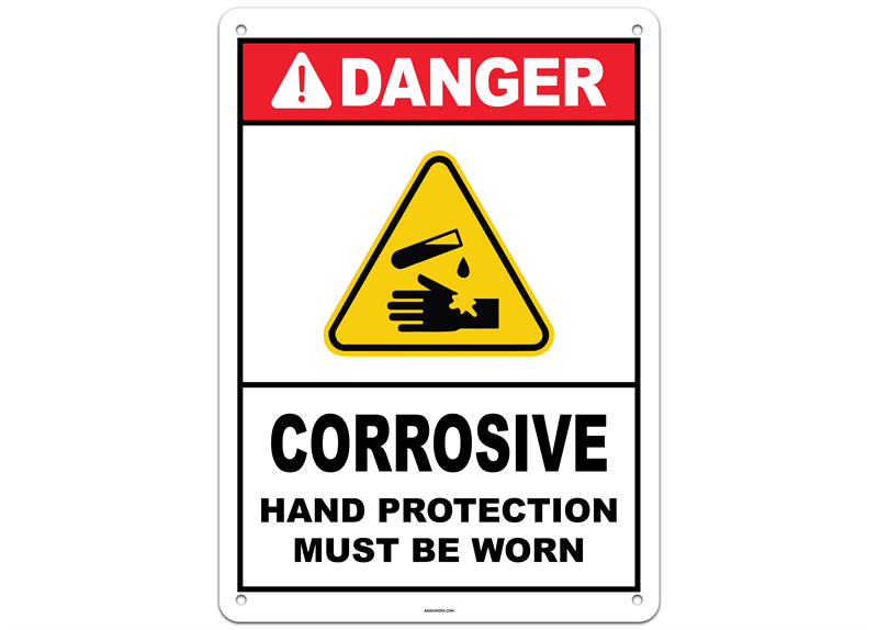 Danger Corrosive Hand Protection Must Be Worn Sign