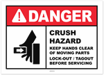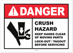 Danger Crush Hazard Keep Hands Clear of Moving Parts Lock-out / Tagout Before Servicing Sticker